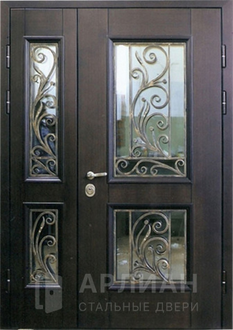 Входная дверь с ковкой и стеклом №414